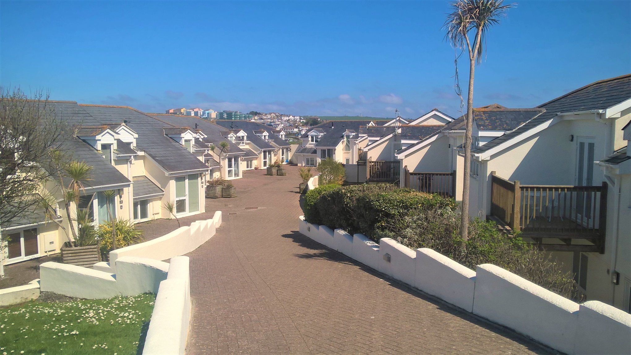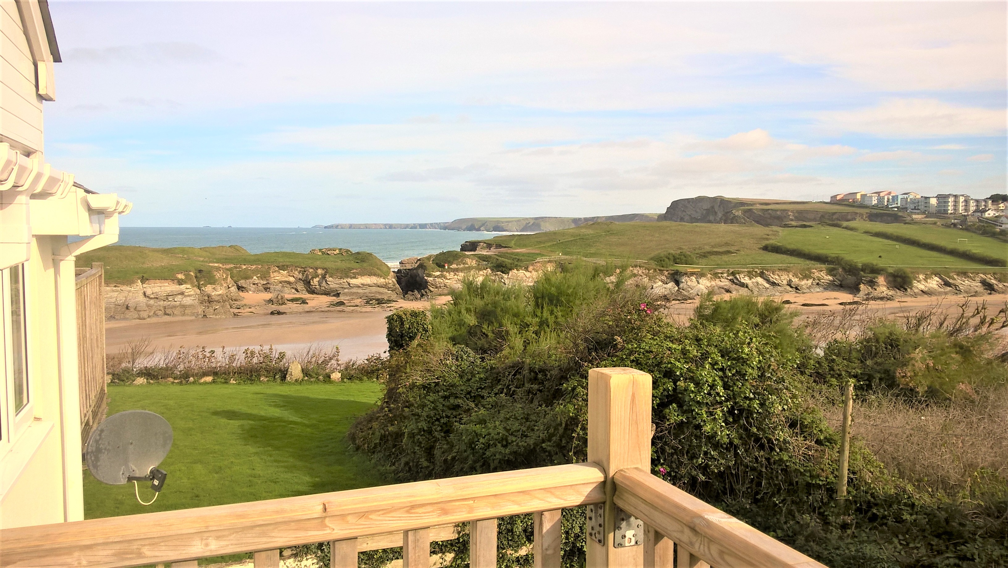 Set in the picturesque Glendorgal estate on a privately owned headland above family friendly Porth beach. Stunning sea views from the balcony towards Porth Island & the north coast of Cornwall.