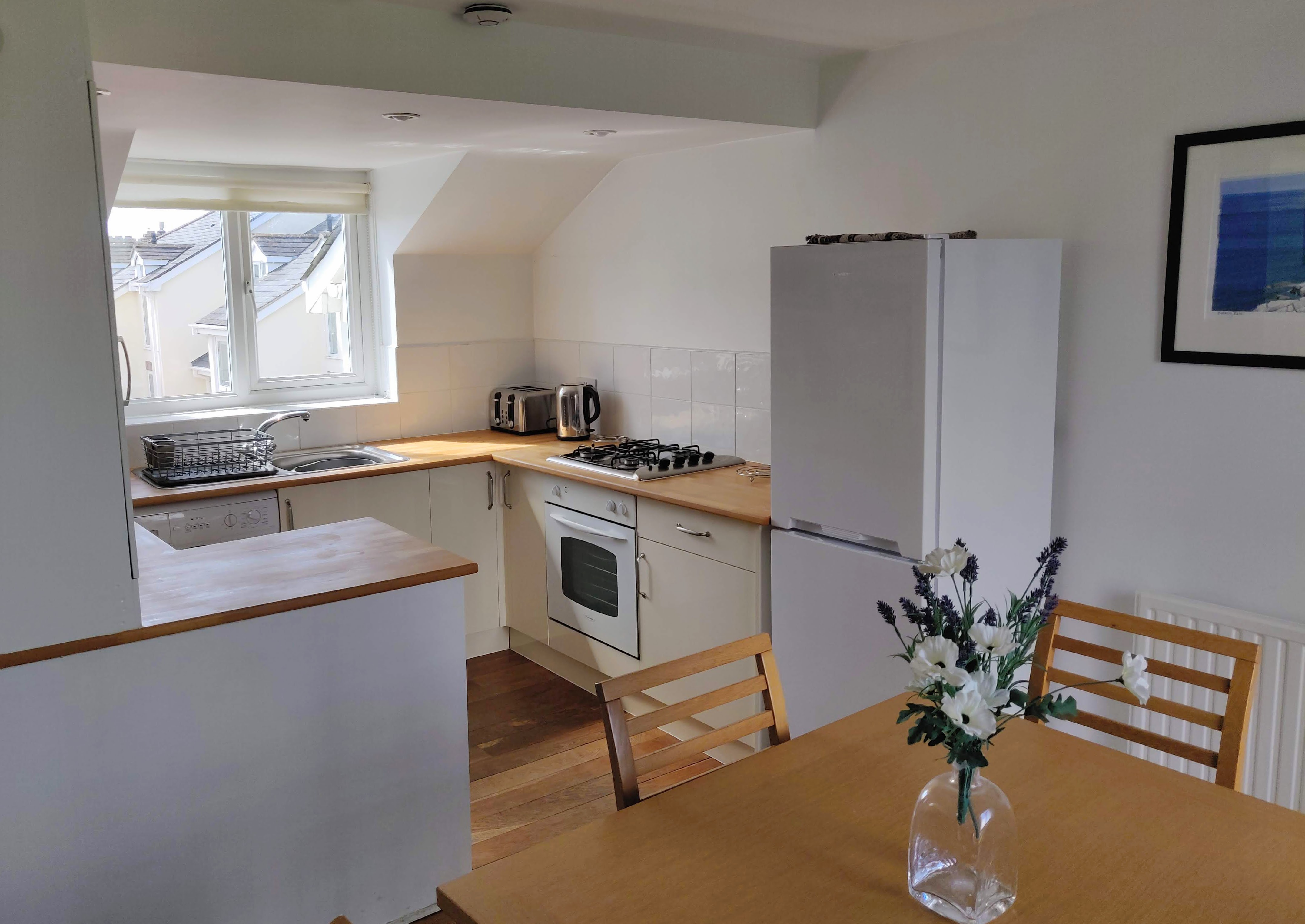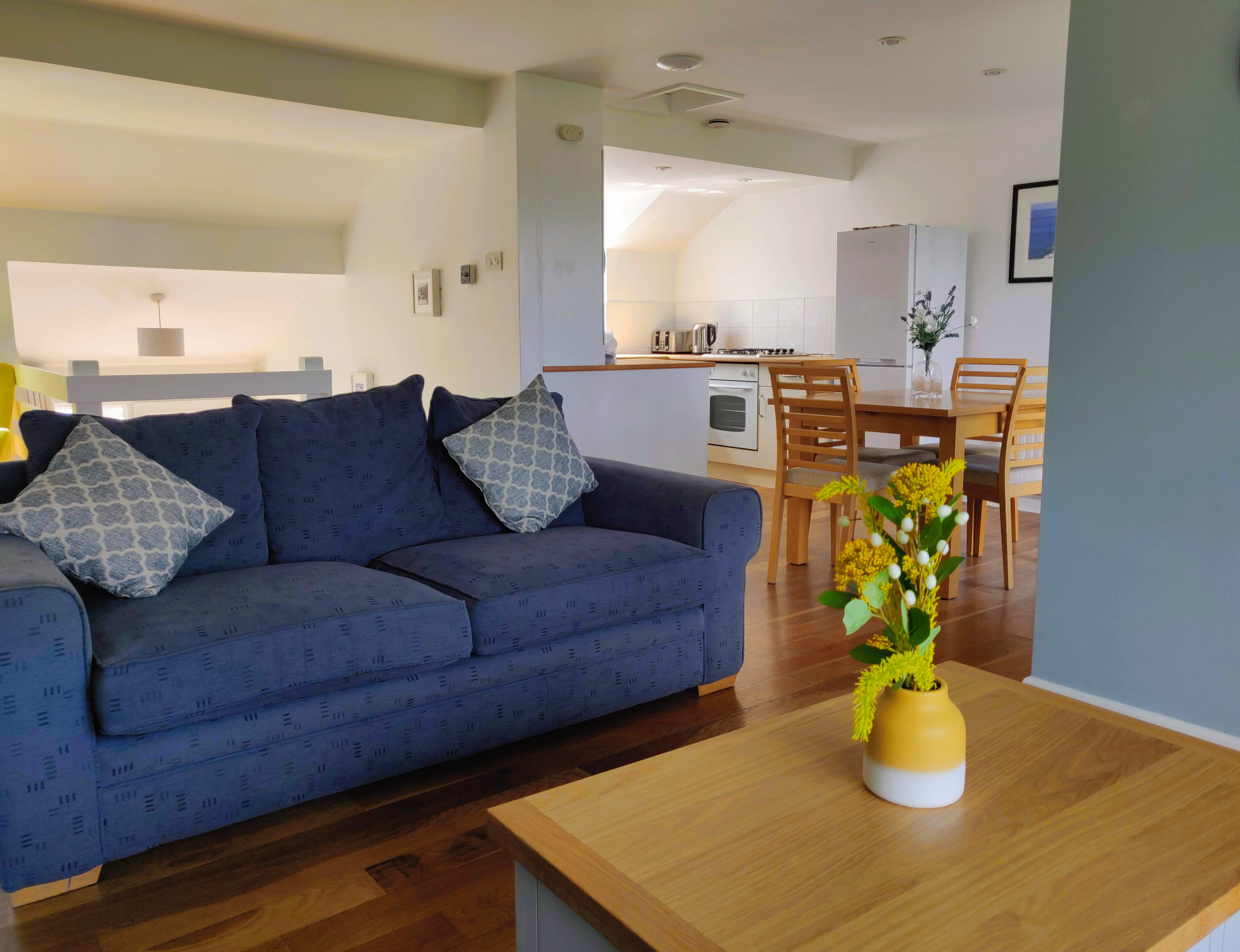 Porth View is a modern, reverse level end of terrace house. Internally, the property offers a light and airy open plan living, kitchen and dining area which is furnished to a high standard throughout. The living area also gives access to a balcony offering sea views. Bedroom One has patio doors leading to an enclosed garden with a furnished decked area, ideal for al fresco dining.