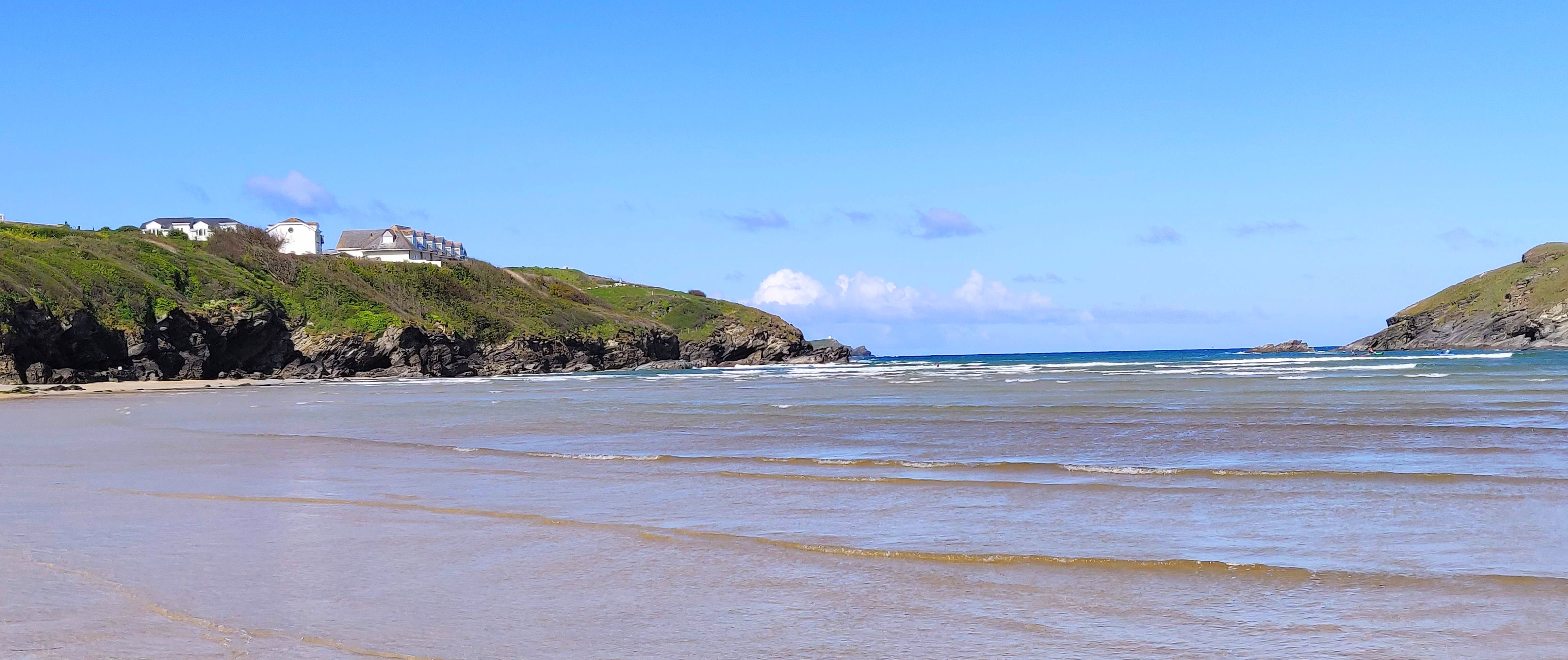 The house directly overlooks Porth Beach from the lounge and balcony. At high tide the beach can be accessed via steps from the former hotel. If the tide is high enough, you can walk all the way to Watergate Bay along the beach.