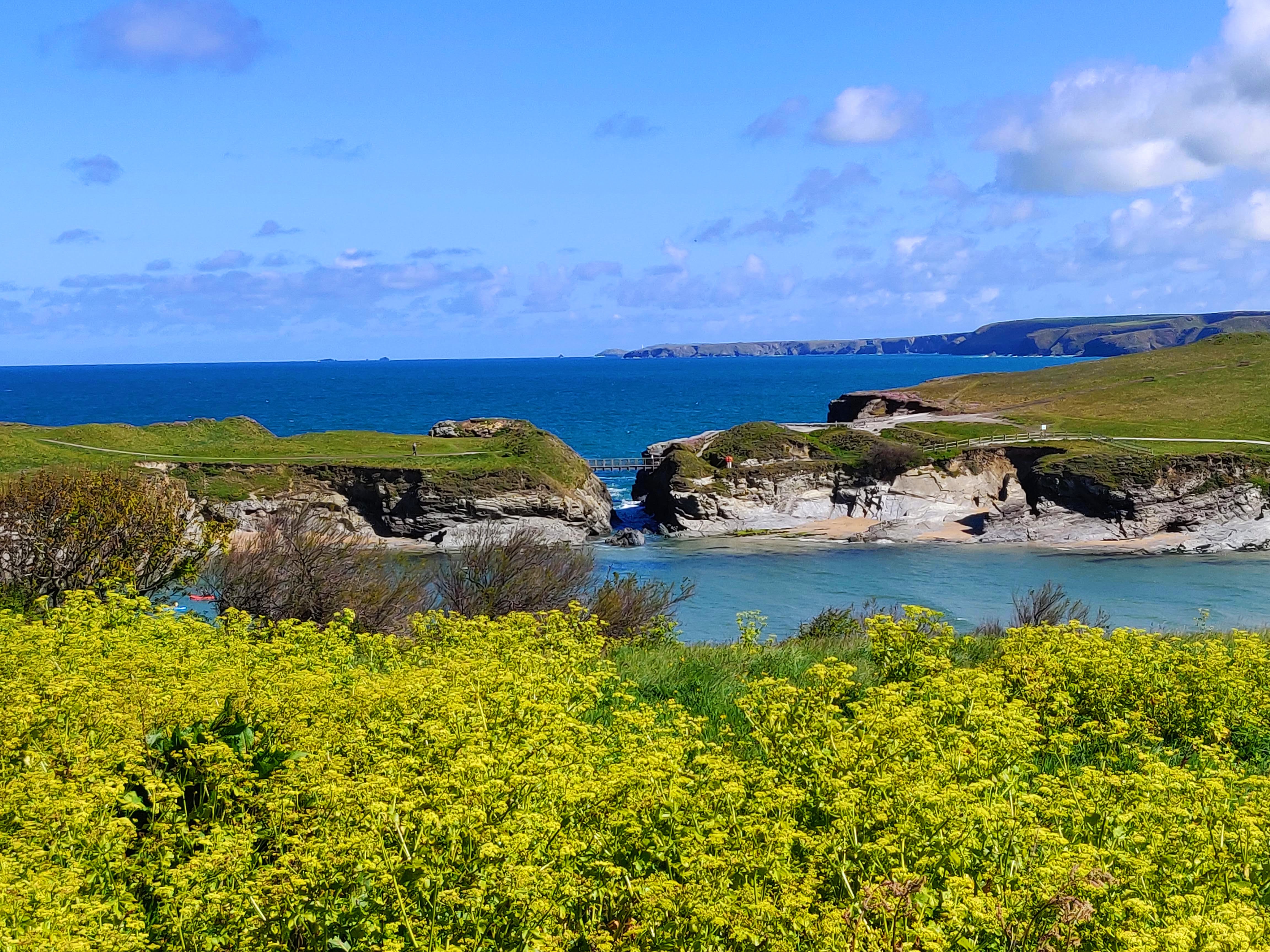 At low tide, the bay is filled with crystal clear waters and sheltered in such a way that makes it popular for many water sports like kayaking and diving. Porth beach is popular with families as it is one of the safer beaches and lifeguards are present.