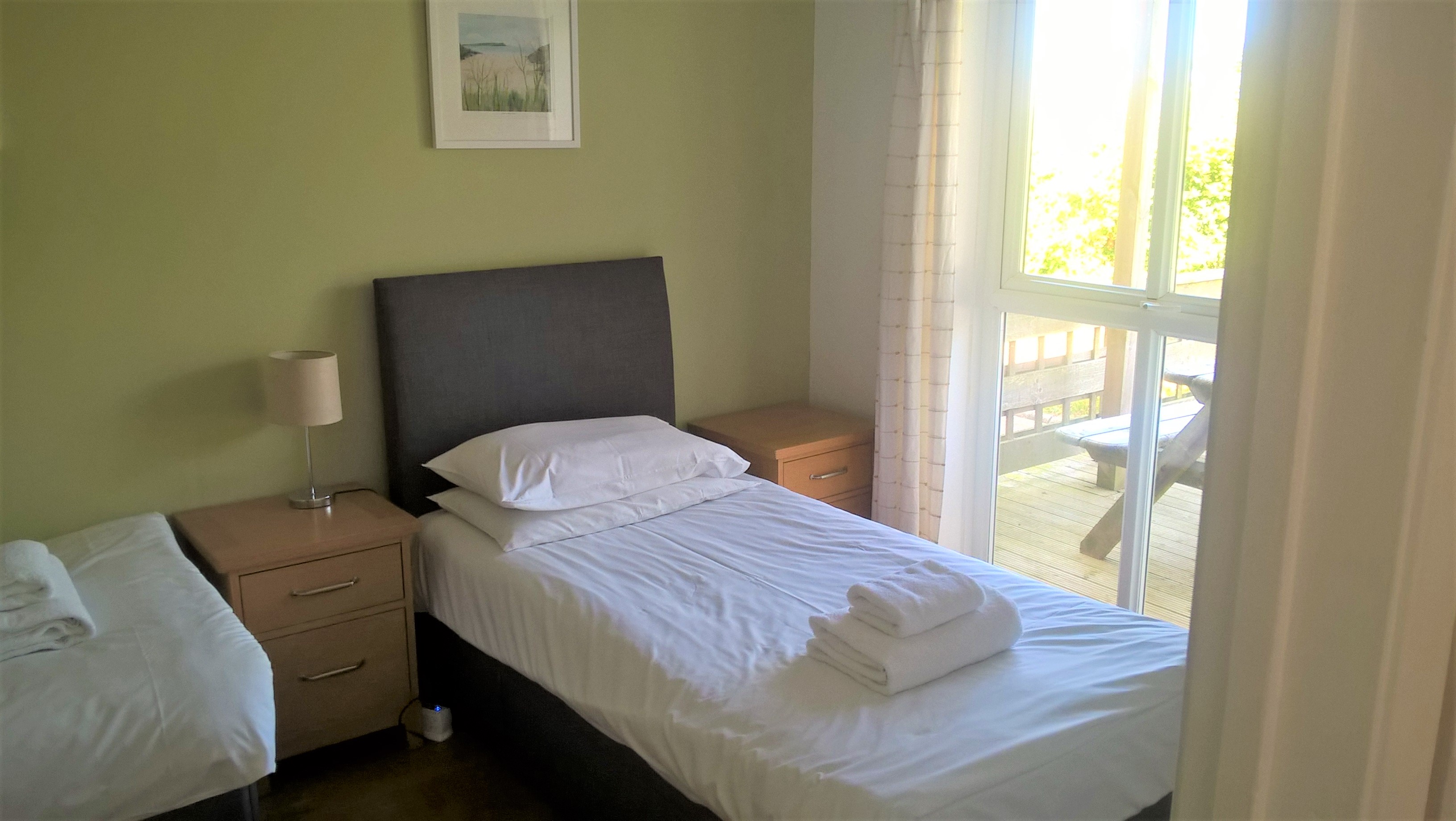 Furnished with twin beds, chest of drawers and two bedside cabinets complete with lamps